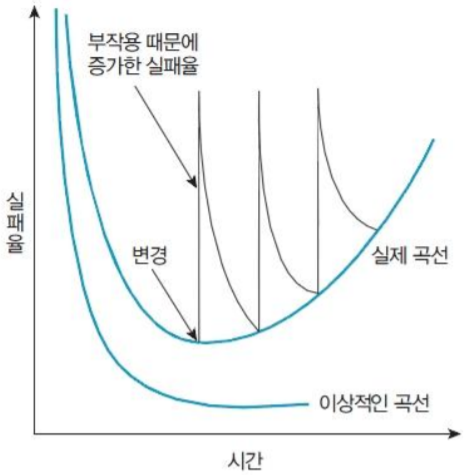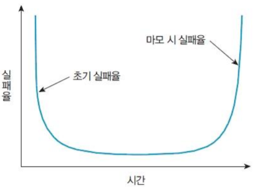 - 하드웨어는 초기 실패율이 매우 높지만 오류 해결 후 큰 문제없이 오래 지속된다.