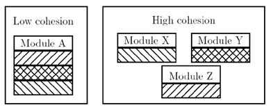 - 프로그램의 한 요소가 특정 목적을 위해 밀접하게 연관된 기능들이 모여서 구현되어있다.