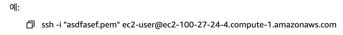 ~.pem형식으로 되어있다chmod 400 키이름.pem유저가 읽기만가능하다는 권환으로 변경