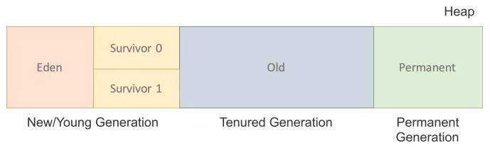 Permanent Generation(제거 됨), New/Young Generation, Tenured Generation