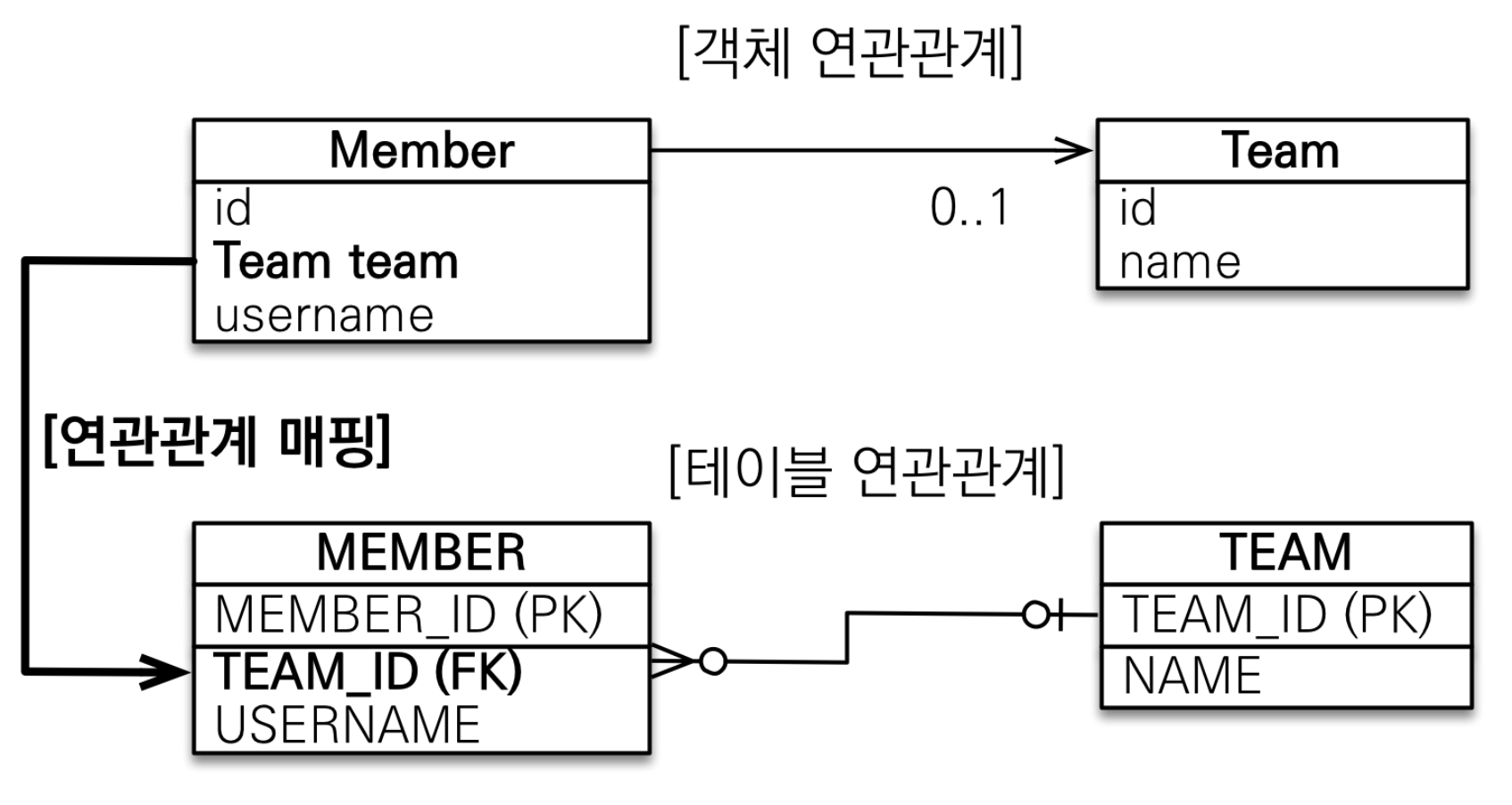 객체의 참조와 테이블의 외래 키를 매핑
