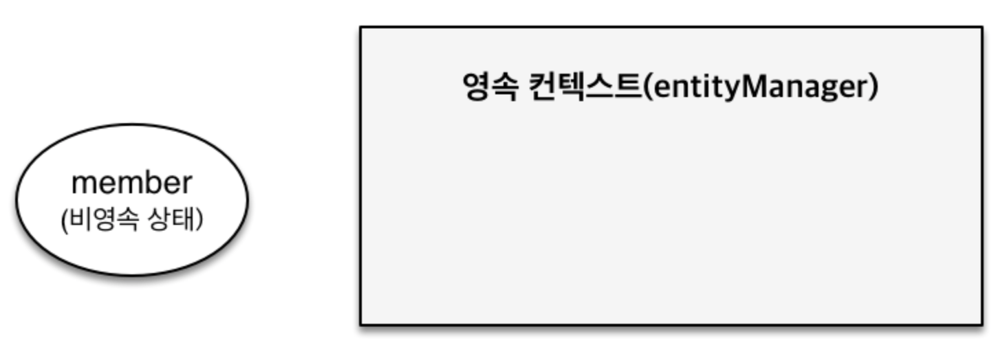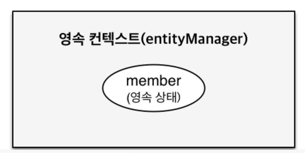 ex) EntityManger.persist(entity)Entity를 영속성 컨텍스트 안에 넣는다.- 영속성 컨텍스트는 논리적인 개념 즉, 눈에 보이지 않는다.