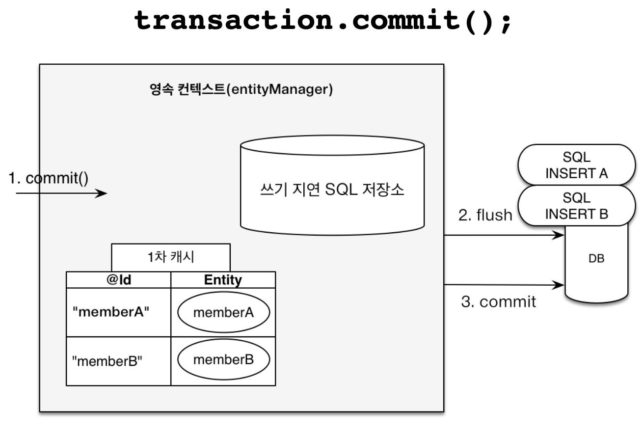 //커밋하는 순간 데이터베이스에 INSERT SQL을 보낸다.