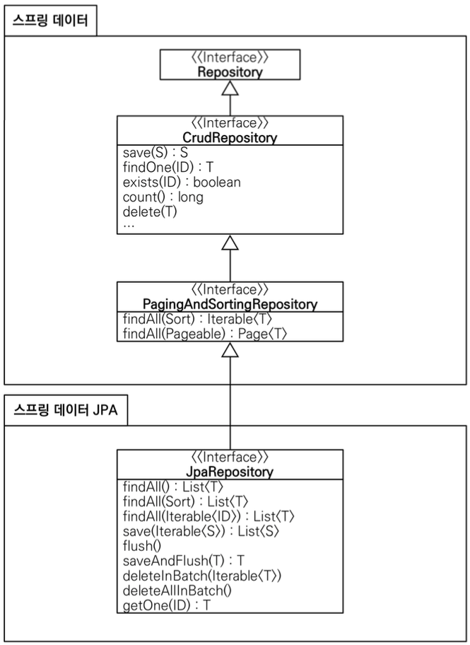 - JpaRespotiroy 인터페이스: 공통 CRUD 제공