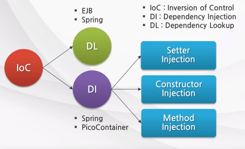 어떤 방법을 사용하여(ex.생성자 등..)사용하여 주입 받아 사용것 을 IoC의 일부라고 표현 할 수 있다.
